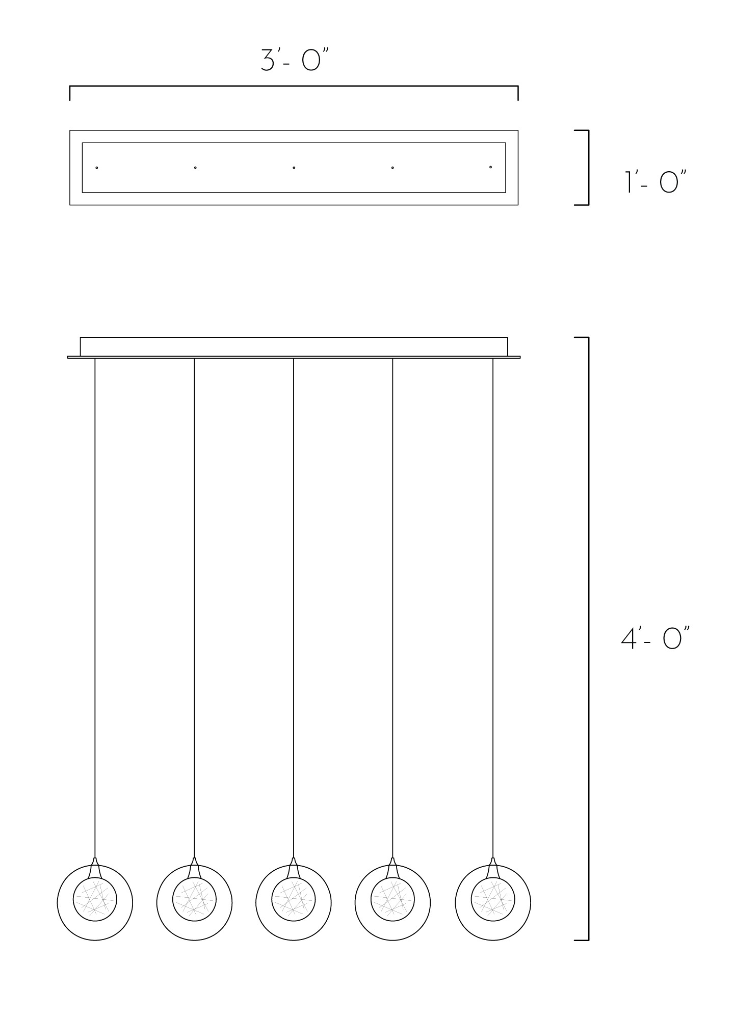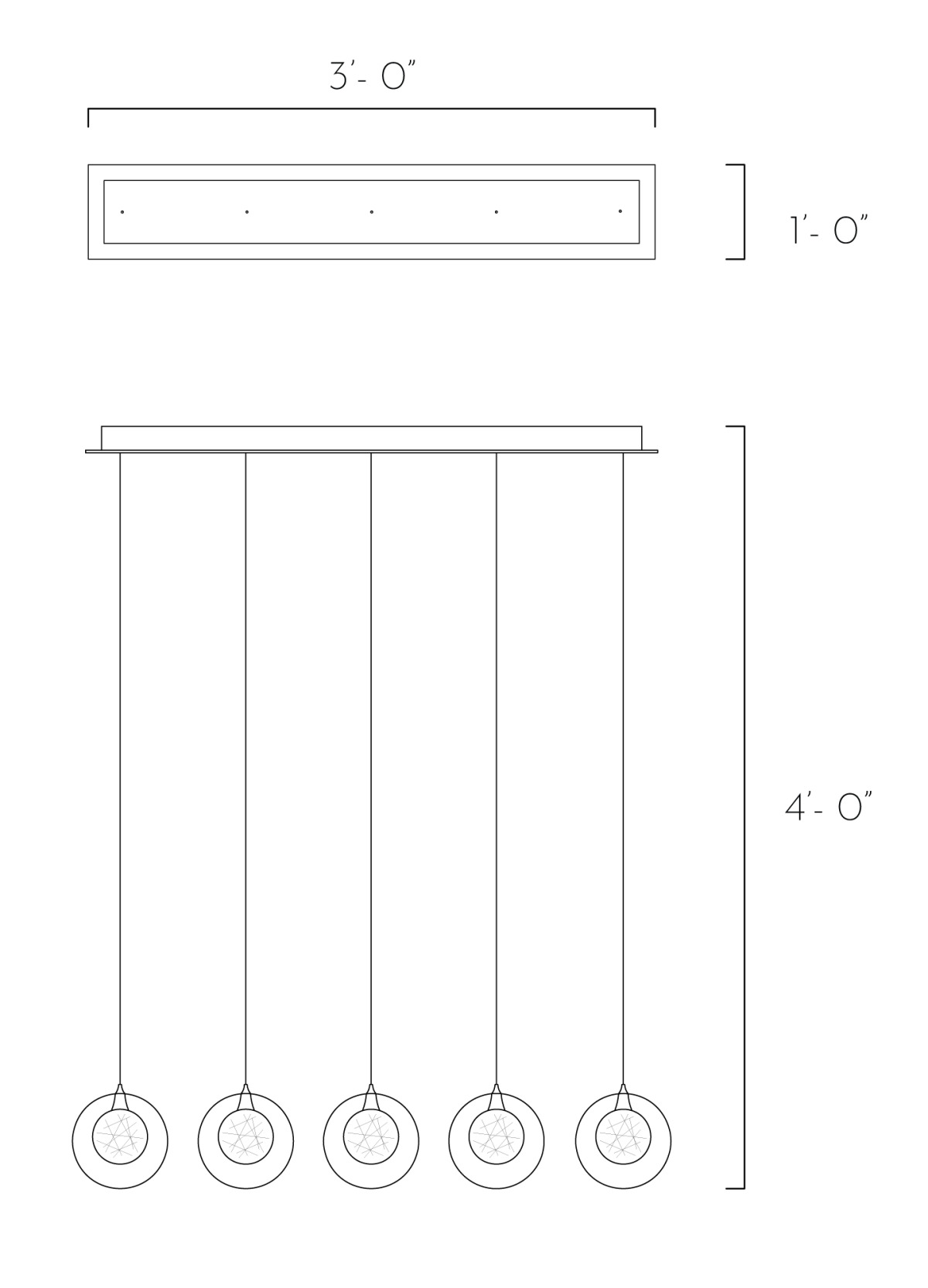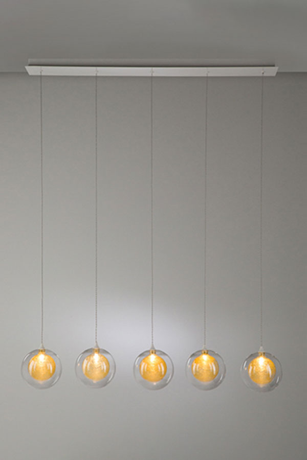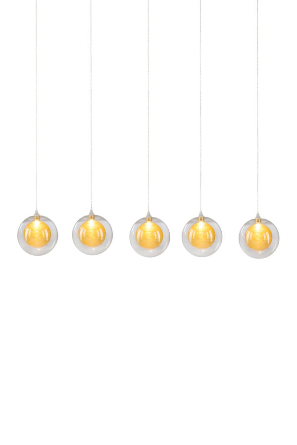 5 Gold Fiberglass Balls Pendents Chandelier - Rectangular Ceiling Bar