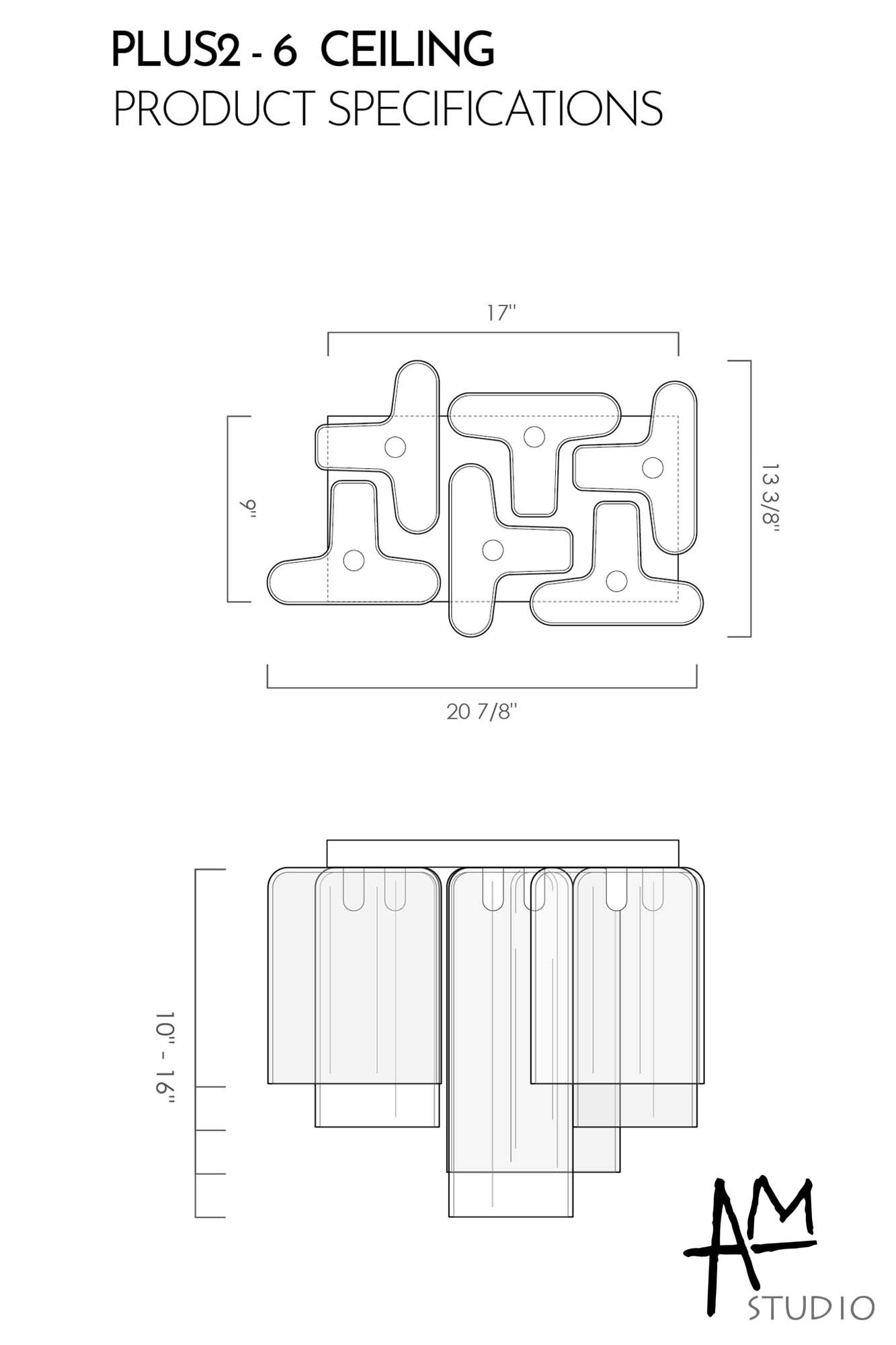 The aptly named Plus2 brings both a graphic and organic touch to any home décor. The cleaved plus signs are arranged in a bold geometric arrangement flush to the ceiling while the hand blown, clear and frosted glass shapes filter an ambient light, warming every space. Perfect for above the foyer and staircase, dimmable, and available in various clusters.