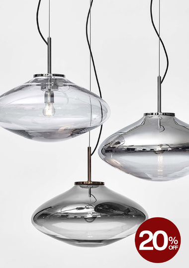 The cut version of the Phenomena Collection combines the tradition of mouth-blown Czech cut crystal with a contemporary and smart approach to design. The precise geometric pattern is made with sophisticated robotic technology developed in-house - the signature know-how of Bomma. The glass parts of Phenomena are mouth-blown thus the intensity of color and gradient may slightly vary.