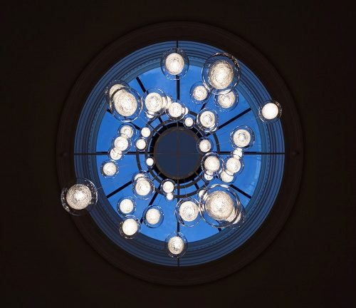The Fiberglass Balls begin with thin fiberglass strands that are twirled around a hand-blown glass ball. A second clear hand-blown glass ball encapsulates the smaller bulb, adding a quiet balance to the fixture. Provides a great source of light that is dimmable for a softer ambiance. Great contemporary lighting for residential and commercial spaces.