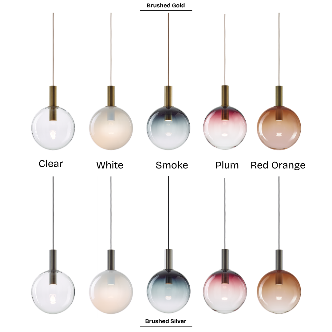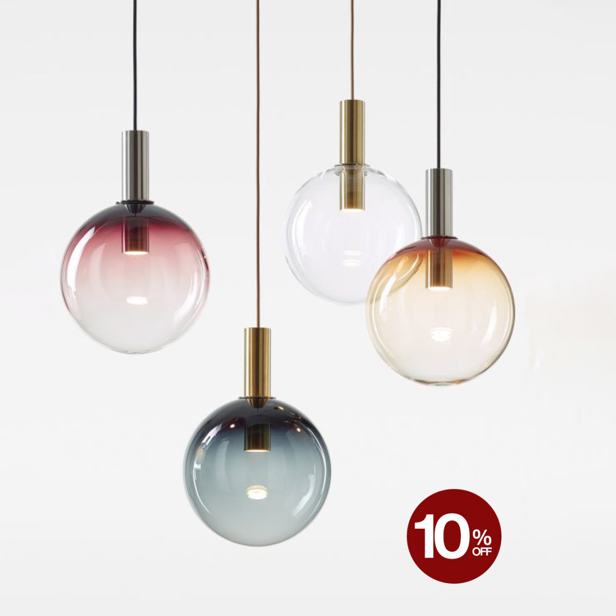 The Divina Collection emulates the timeless concept of a spherical glass body, combined with the delicate touch of a color gradient, an idea used in the past by DECHEM studio. Divina lights are the younger siblings of the Phenomena Collection. Unlike Phenomena, the Divina lights are smaller and more suitable for intimate interiors. Divina is ideal for use above a desk or dining table, its light source located within the bottom of the cylindrical mounting body. Its refined color gradients lend it an aura of timeless dream worlds, while remaining visually striking.