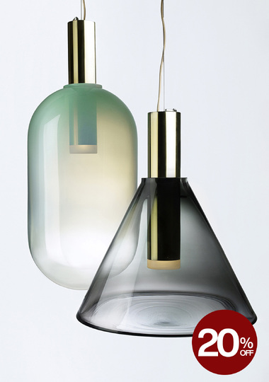 Knot, a collection of stately pendent lights, contrasts two dissimilar materials, two dissimilar notions: gentle curves in clear handblown glass against the austerity of coarse rope. The resulting design is striking, forthright, and dignified at the same time. Full-bodied globes of varying shapes and sizes are penetrated by robust rope ending in the core design element of the collection – the knot – which seemingly pulls the bottom of the glass inward for a bemusing plastic effect. The LED light source is mounted beneath an elegant hood made of stamped metal and protected from below by a handblown opal diffusor. Another metal component serves to cap the end of the rope. KNOTs are well-suited to both private and public interior spaces and make a particularly impressive statement above dining tables. The collection comprises four pendant lights and several colour options. Knot Small expands the Knot collection with smaller versions of each light. The new size comes in response to increasing demand for compact lights suited to smaller interiors with lower ceilings.