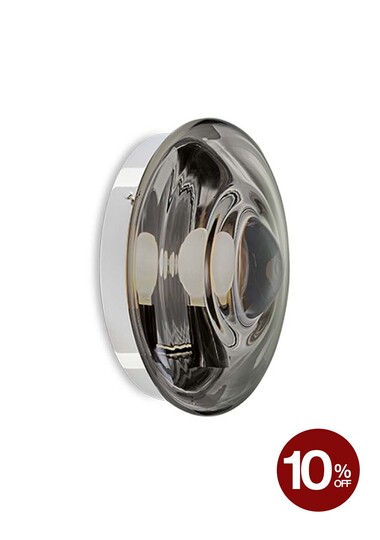 Orbital paths of multicolored celestial bodies with hypnotically glowing cores. This ingenious design of mouth-blown glass lenses, held together by a metal mounting, creates a fascinating visual experience from a different angles.