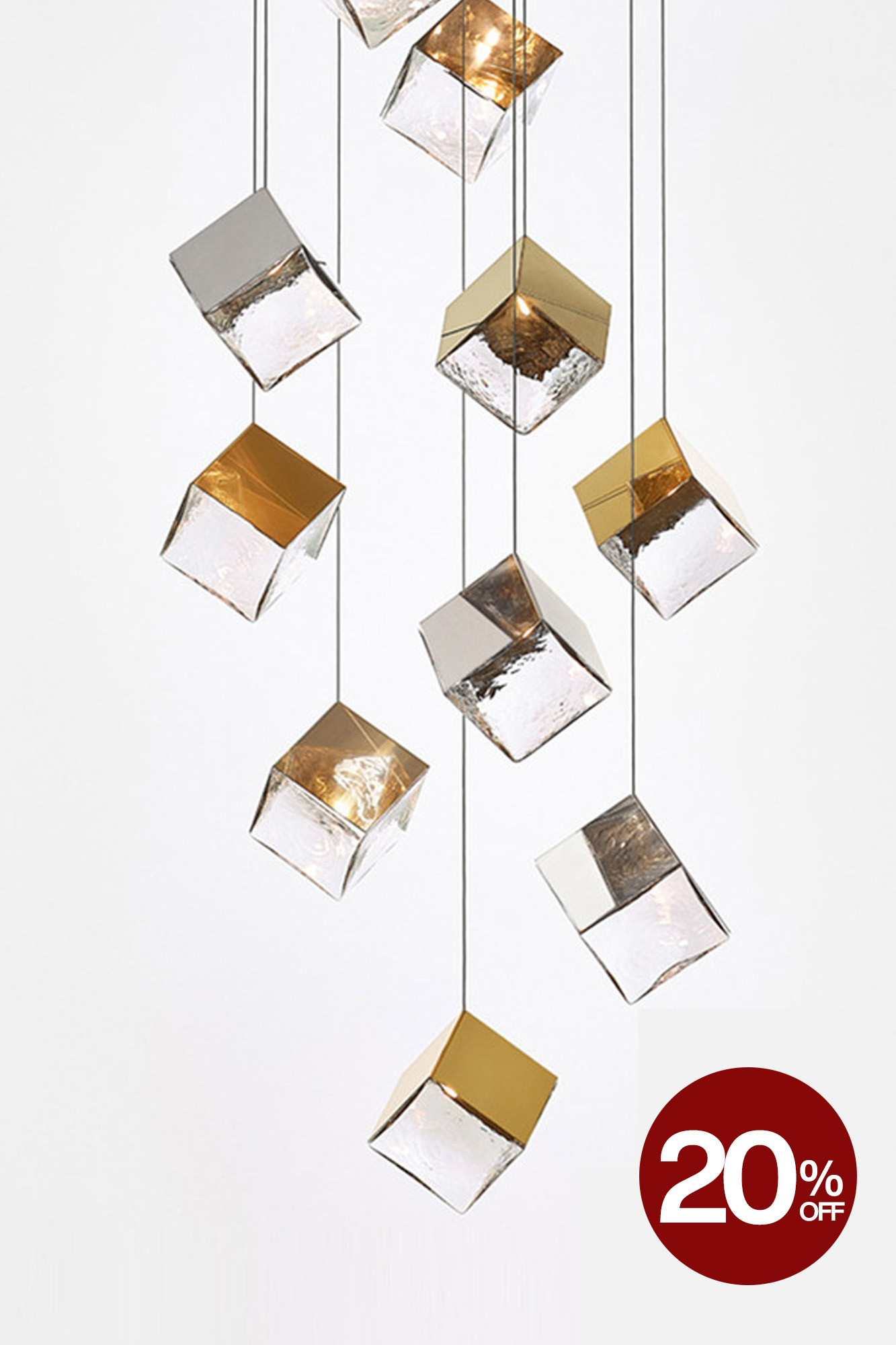 The sculptural structures of minerals and their perfectly smooth surfaces are among the most precious treasures from the very core of the Earth, only revealing their optical magic once they encounter a source of light. This BOMMA Award-Winning Lighting collection was inspired by pyrite, the golden fire-stone in the shape of a perfect cube, while the silver version of the shade reflects its inspiration in salt crystals. By blowing a molten organic substance into a precise cold form, the skilled hands of our glassmakers create a unique light fixture of elemental, yet perfect shape. The gleaming surface of this hand-blown crystal cube is enclosed from three sides by a polished metal component in either silver or gold tones. The Pyrite Collection excels in both exceptional design and top-quality materials. Easily combined, it invites you to create your own unique lighting constellations.